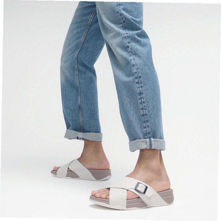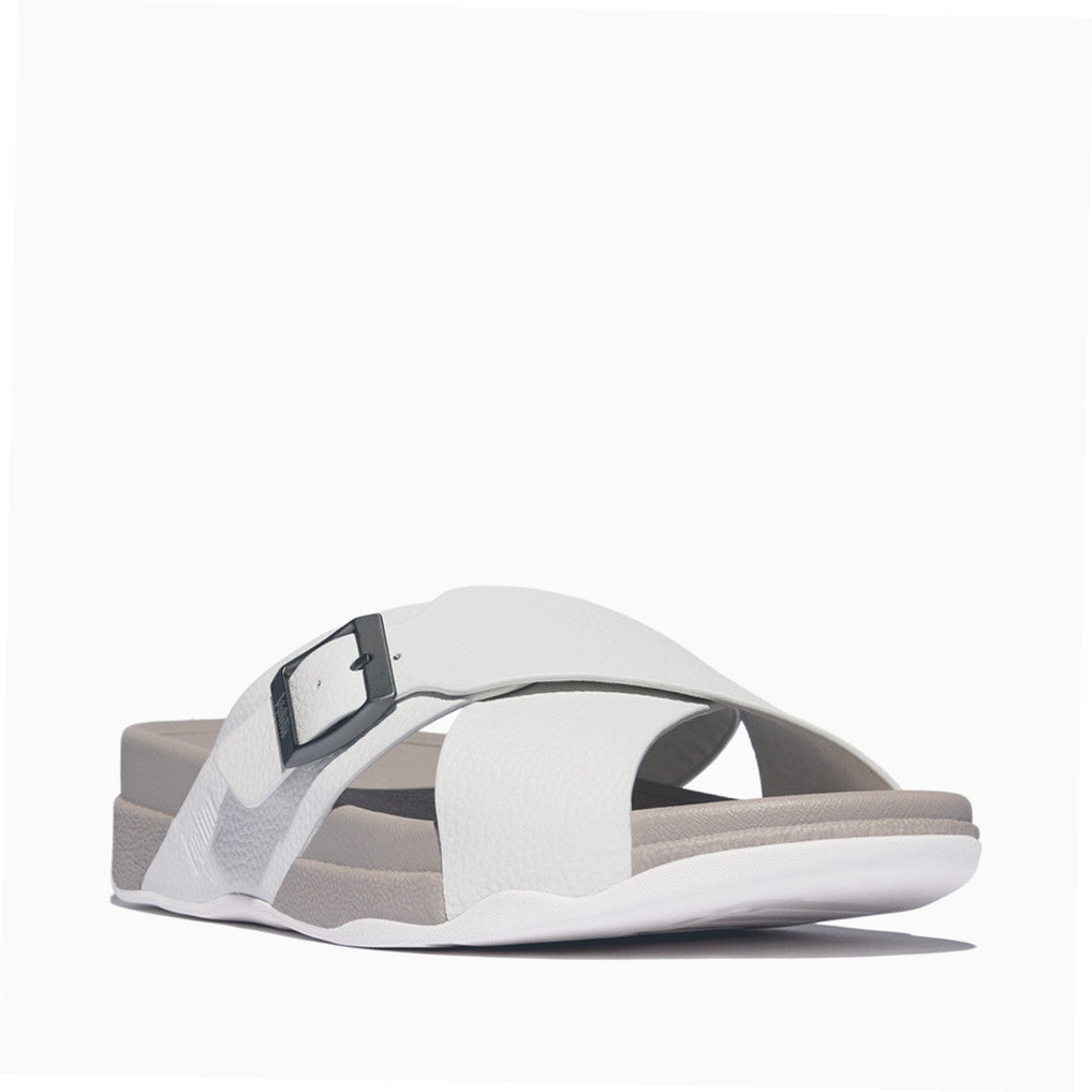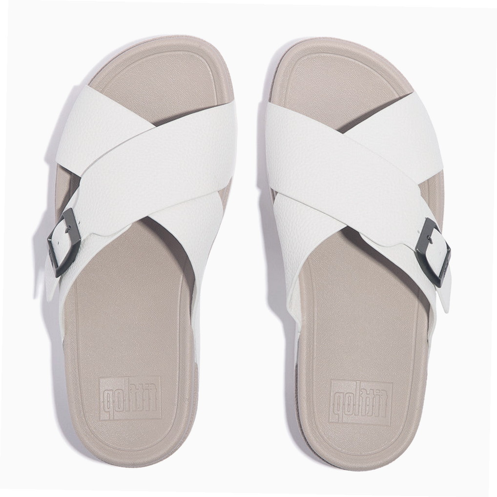 Men’s Scuffed-Leather Calm Drift Cross-Buckle Sandals