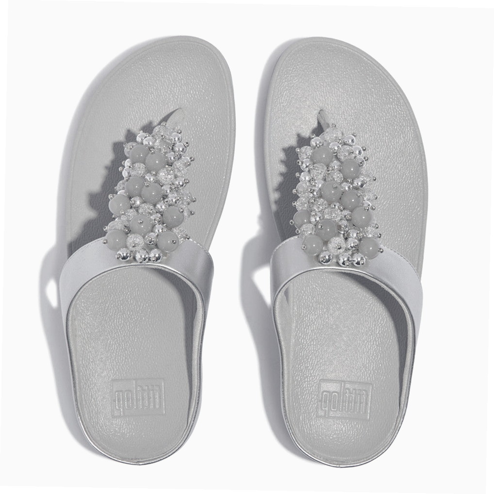 Women’s Linen Trace Bauble-Bead Toe-Post Sandals