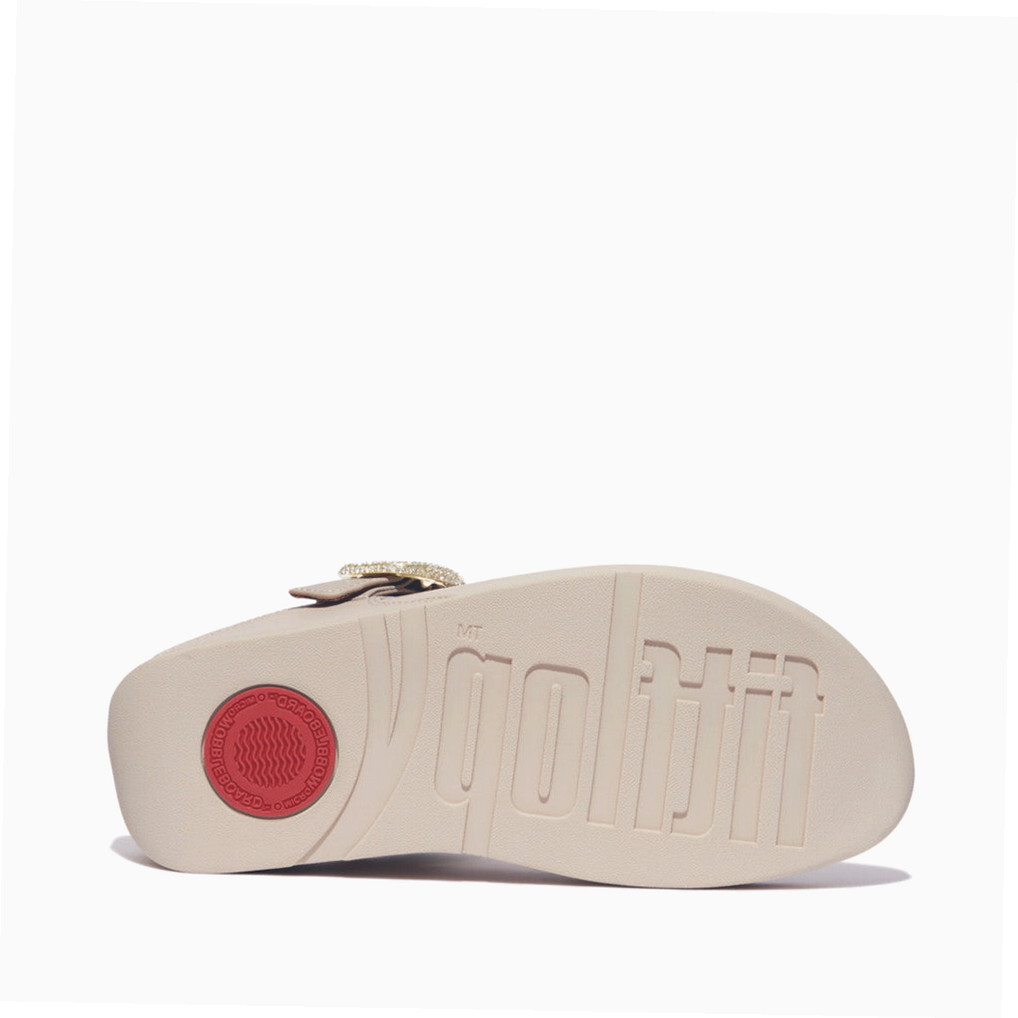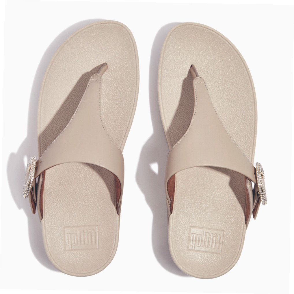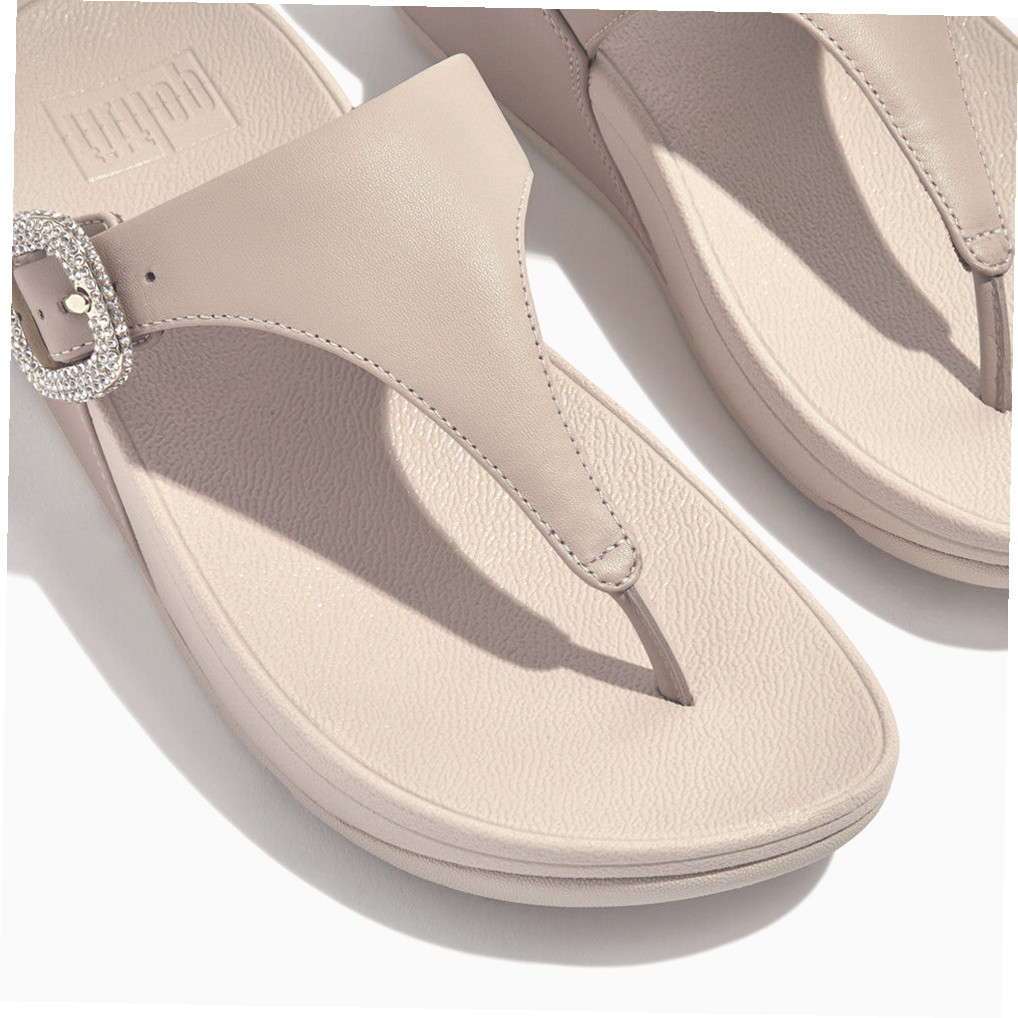 Women’s Lulu Leather Crystal-Buckle Toe-Post Sandals
