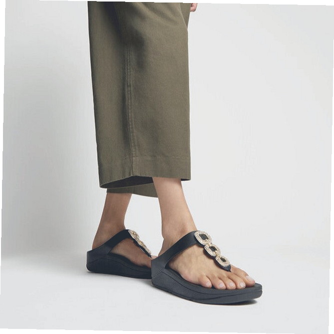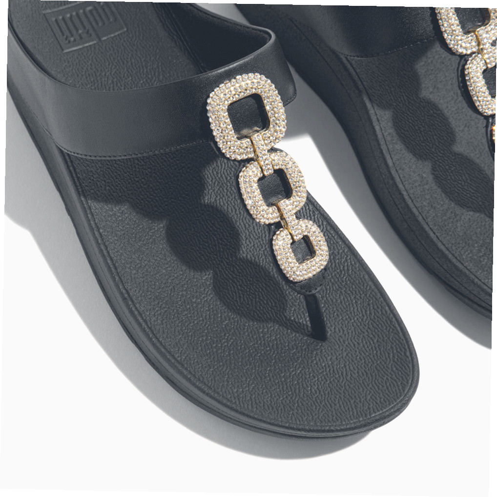 Women’s Quiet Trail Leather Crystal-Chain Toe-Post Sandals